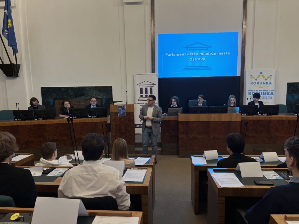V pátek 21. 2. 2025 uspořádal Parlament dětí a mládeže města Ostravy unikátní debatně vzdělávací akci, která mladým lidem umožnila nahlédnout do fungování komunální politiky. Pod záštitou primátora města Ostravy Jana Dohnala si mladí lidé vyzkoušeli, jaké to je být zastupitelem – diskutovat, vyjednávat a rozhodovat o budoucnosti města.